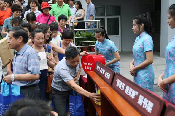 闵行区委宣传部副部长邢红光、教育局党委书记朱雪平启动2015“你读书,我买单”活动。